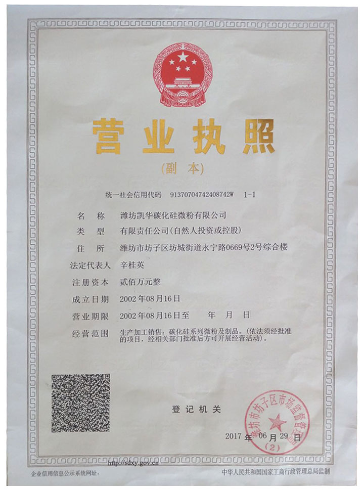 濰坊凱華碳化硅微粉有限公司成立于2002年,國家高新技術(shù)企業(yè),公司占地40畝,標(biāo)準(zhǔn)廠房19000平方,辦公樓、研發(fā)2000平方,年生產(chǎn)能力3萬噸。一直從事陶瓷級(jí)微粉的生產(chǎn)銷售,所生產(chǎn)的微粉具有純度高、粒形好、穩(wěn)定性強(qiáng)等特點(diǎn),主要用于反應(yīng)燒結(jié)、無壓燒結(jié)、硅碳棒新工藝、汽車尾氣處理(DPF)、納米隔熱保溫、機(jī)車制動(dòng)、防腐涂料、研磨拋光、橡膠樹脂等領(lǐng)域。標(biāo)準(zhǔn)產(chǎn)品有:F240、F1200、W40、W28、W20、W14、W10、W7、W5、W3.5、W2.5、W2、W1.5、W1、W0.5、D3E、5S、100F及整形高密度系列綠碳化硅微粉,廣泛應(yīng)用于燒結(jié)、防腐、研磨拋光、涂腐等廣大領(lǐng)域。